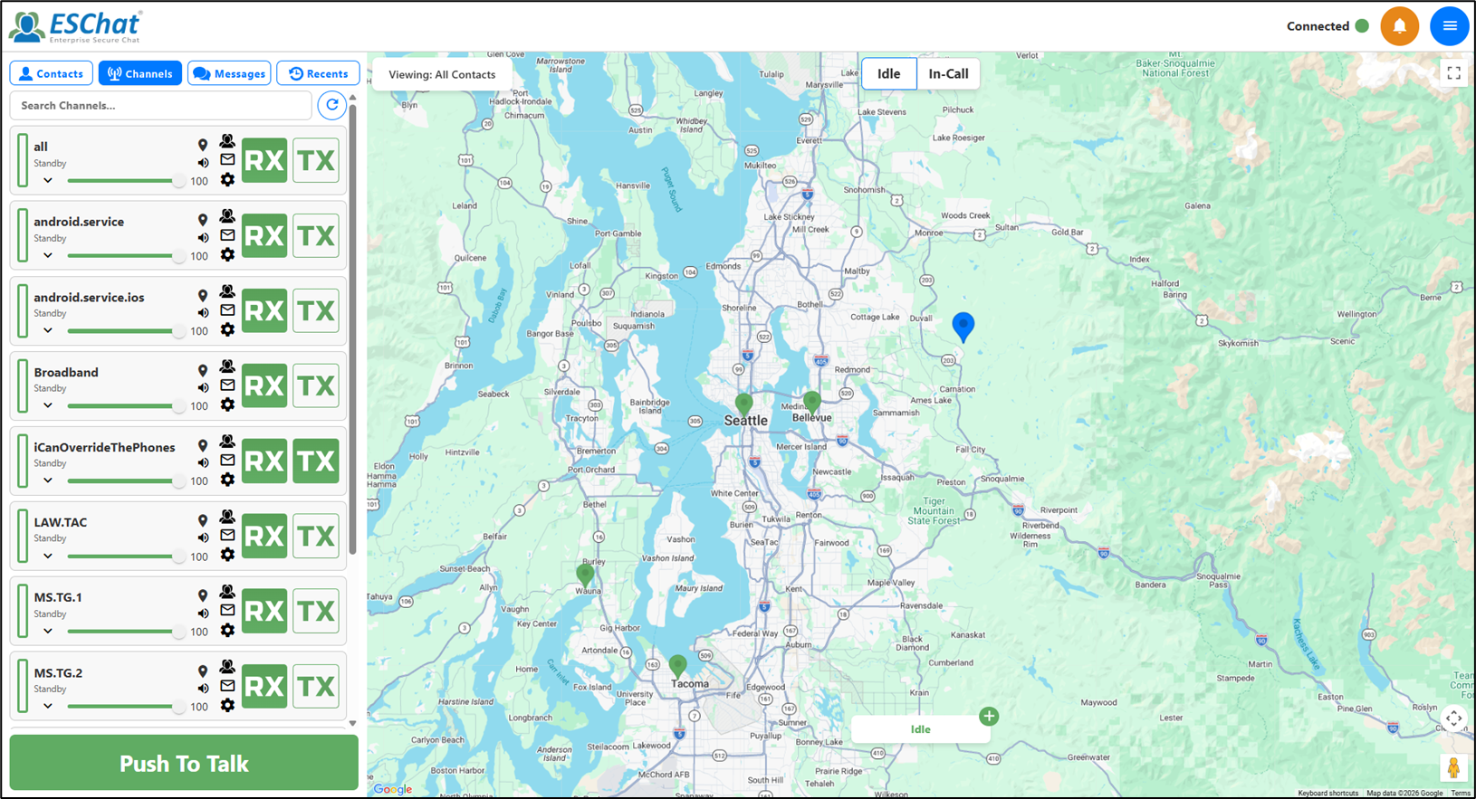 The ESChat Windows PC Client is a option for those who want to a simple method of communicating with their mobile workforce from a laptop or desktop computer. The features of the ESChat PC client and are limited when compared with a true Dispatch Console. The PC Client is a free download that uses a standard ESChat license.